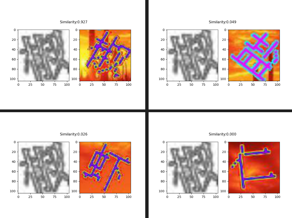 2、对点击的字进行排序: 在确定出需要点击的字的位置后,需要按照一定的规则对这些字进行排序。采用传统的方案是通过识别图片中的文字,然后按照文字位置进行排序,但这种方法训练困难。因此,本项目采用了图片匹配模型,使用 Siamese 孪生网络对需要点击的字与预先准备好的字库中的字进行匹配,找到最佳匹配的字,并按照一定的规则进行排序。Siamese 孪生网络在图像匹配方面表现优异,能够有效地提高排序的准确性和稳定性。