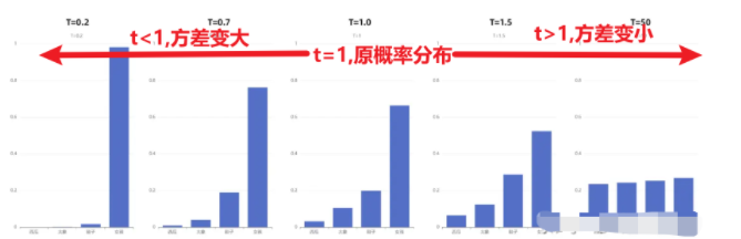 | Temperature (温度) | 通过缩放概率分布,改变分布的“平滑度”(公式见下文)。 | 低温度使强词更强,倾向确定性;高温度使分布变平,增加随机性。 | ![]() |