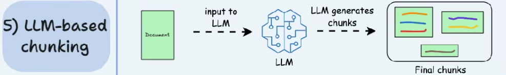 利用大型语言模型 (LLM) 自身的理解能力来判断文本的最佳分割点。可以通过设计合适的提示 (Prompt),让 LLM 将文本分割成语义上内聚且与其他部分相对独立的块。