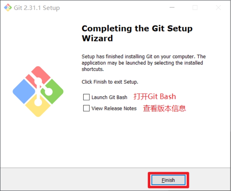 点击Finsh按钮,Git安装成功!