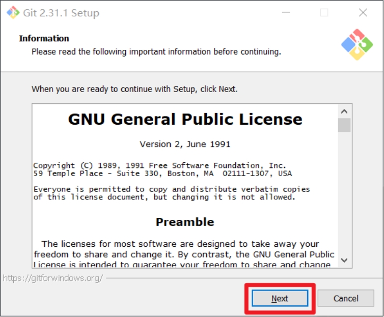 查看GNU协议,可以直接点击下一步。