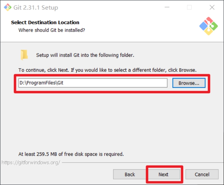 选择Git安装位置,要求是非中文并且没有空格的目录,然后下一步。