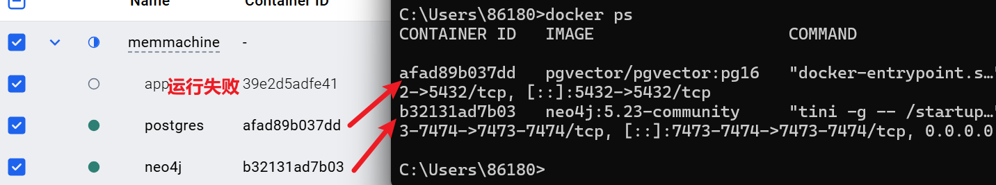查看容器 ID、镜像、运行状态及名称。 |