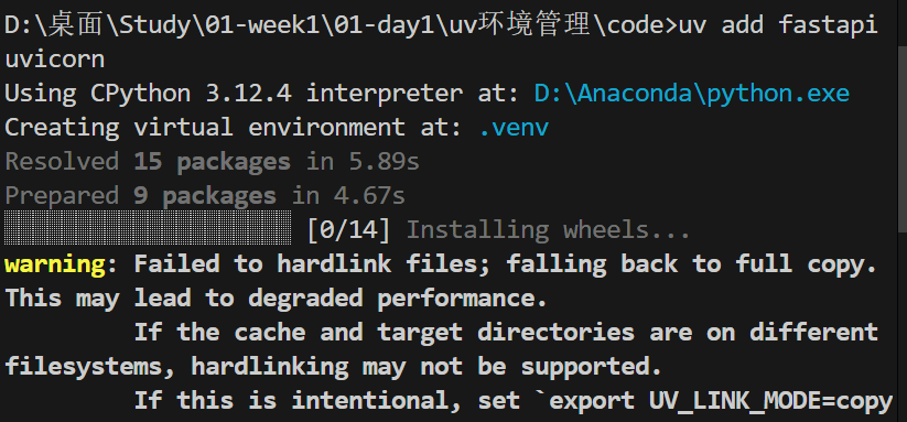 uv add时,uv 会自动为你创建一个虚拟环境(默认在.venv目录中),你不需要手动创建它。