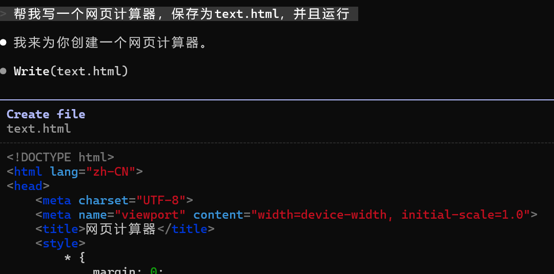 然后让claude重构之前写的网页计算器,这里应该是模型自己去读文件的,但是我直接指定了