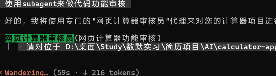 重启后进行测试,这里由于模型能力较弱,只采用显式的调用,可以看到已经启动了subAgent